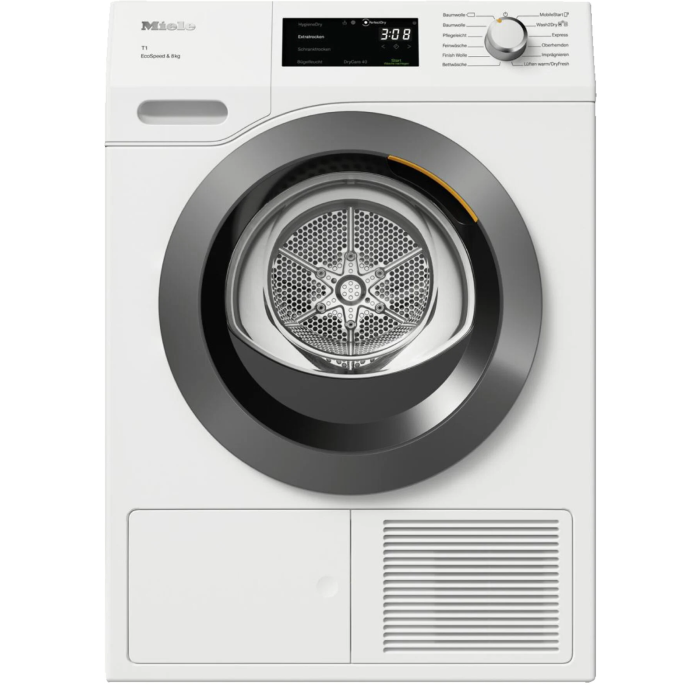 Speciale kenmerken | Nauwkeurig drogen PerfectDry - Pluizig, zacht wasgoed: met PerfectDry is uw wasgoed niet te droog of te droog. Intelligente trommelomkering; HygieneDry - hygiënisch schoon: met HygieneDry wordt tot 99,99% van de geteste bacteriën betrouwbaar verwijderd. Honingraattrommel - minder kreukels, gemakkelijk strijken: de honingraatstructuur droogt het wasgoed zachter en gelijkmatiger; zachte ribben. Koppelen van huishoudelijke apparaten met Miele@home - Maak uw leven slim: dankzij Miele@home kunt u uw huishoudelijke apparaten slim koppelen - voor meer mogelijkheden. Geïntegreerde condensafvoer - legen niet nodig: het condensaat kan via een slang direct in de gootsteen of sifon lopen. AddLoad - Maximaal gemak: ook nadat het programma is gestart, kunt u eenvoudig wasgoed toevoegen of verwijderen. ProfiEco-motor - Krachtig en zuinig: onze ProfiEco-motoren met inverteraandrijving zijn slijtvast, stil en energiebesparend. Onderhoudsvrije warmtewisselaar - bespaar tijd en energie: een filter beschermt de warmtewisselaar en maakt schoonmaken overbodig. Diafragma ontwerp schuin. |